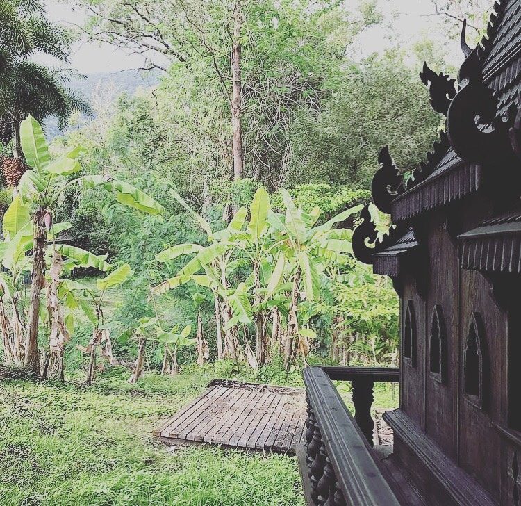 a vast array of organic and local produce. Ranging from Thai eggplant to kaffir lime, chicken roaming around, your hosts will