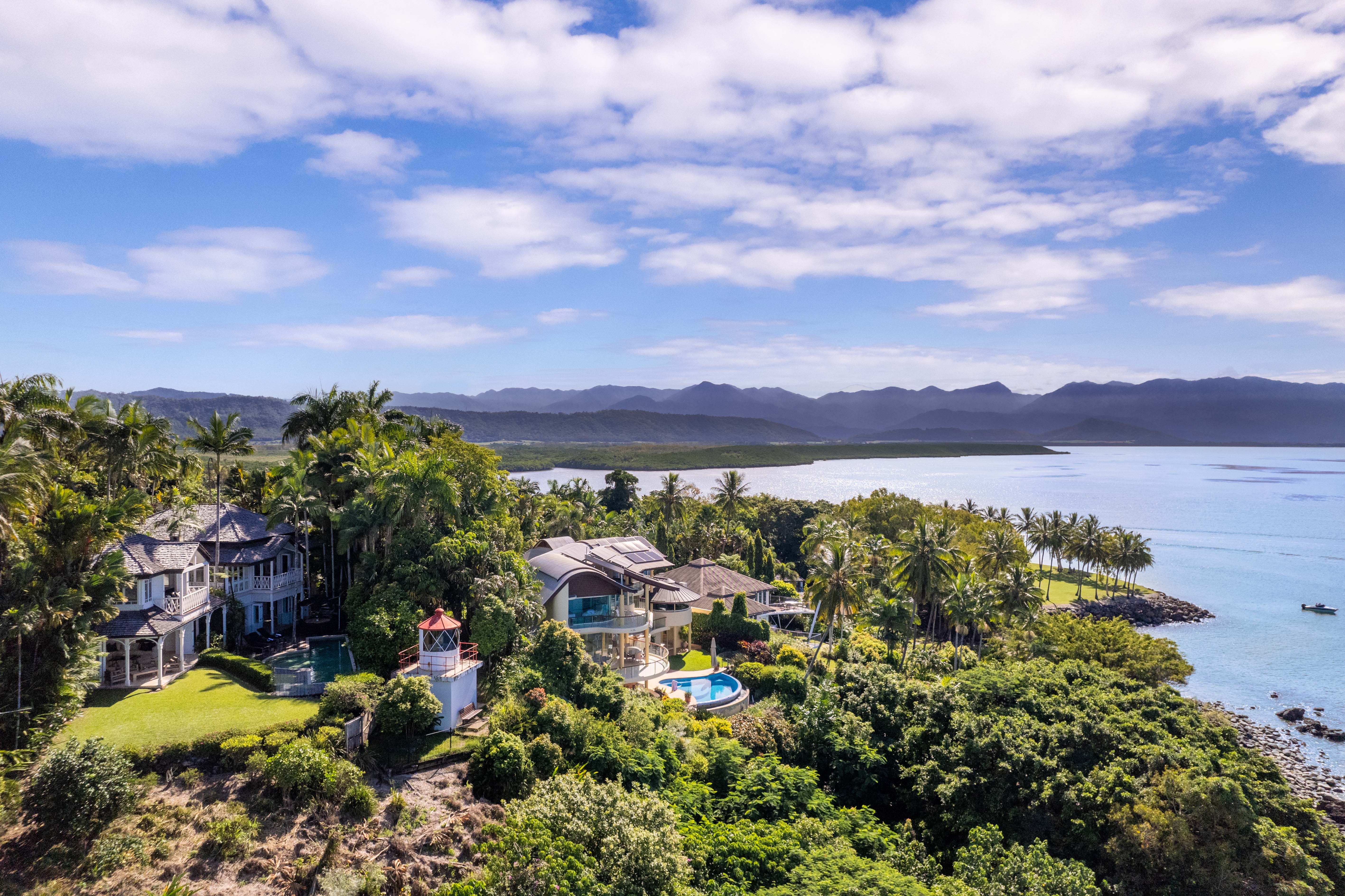 - Amazing views to the Coral Sea, Low Isles, Snapper Island, Port Douglas lighthouse, and Daintree mountain ranges