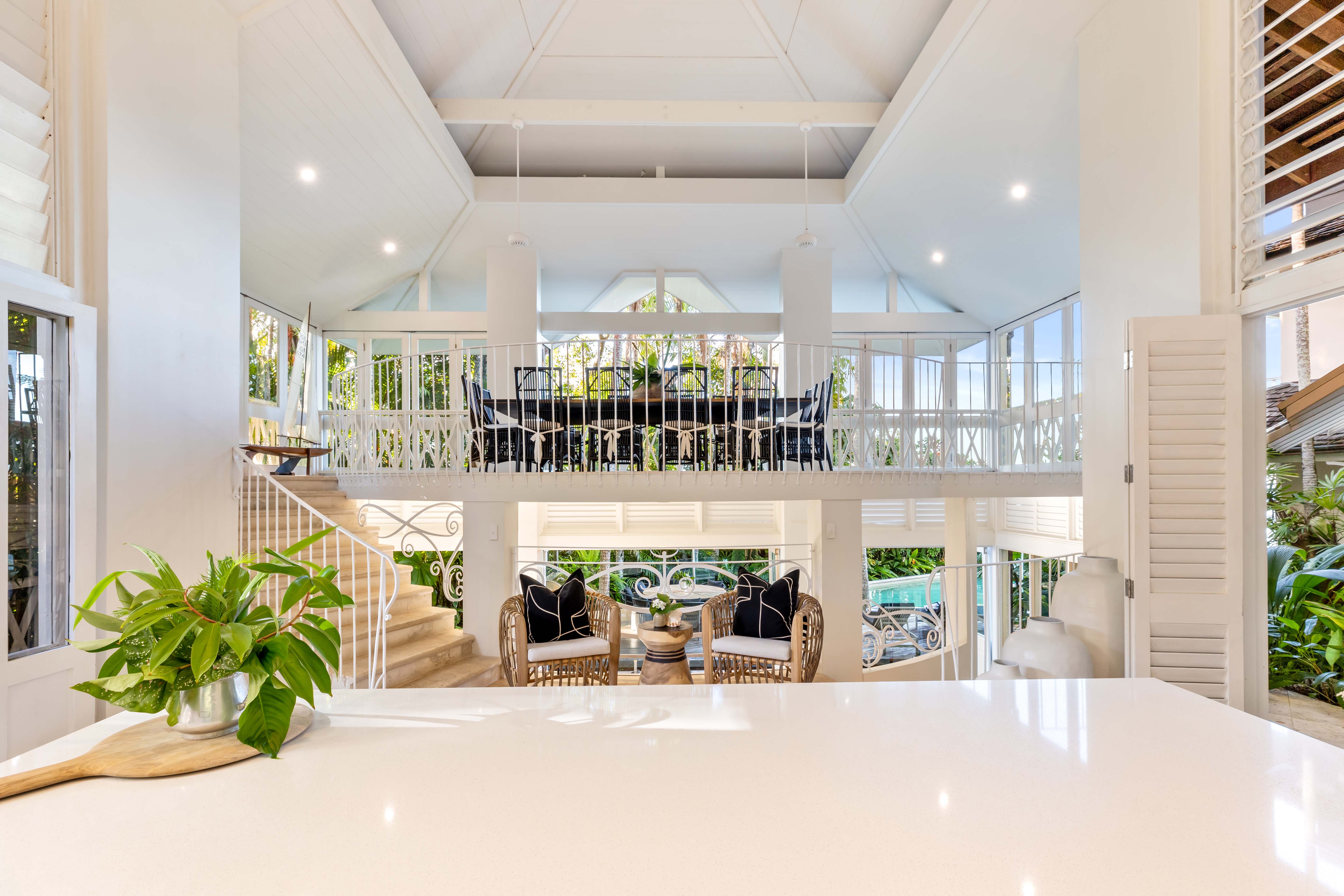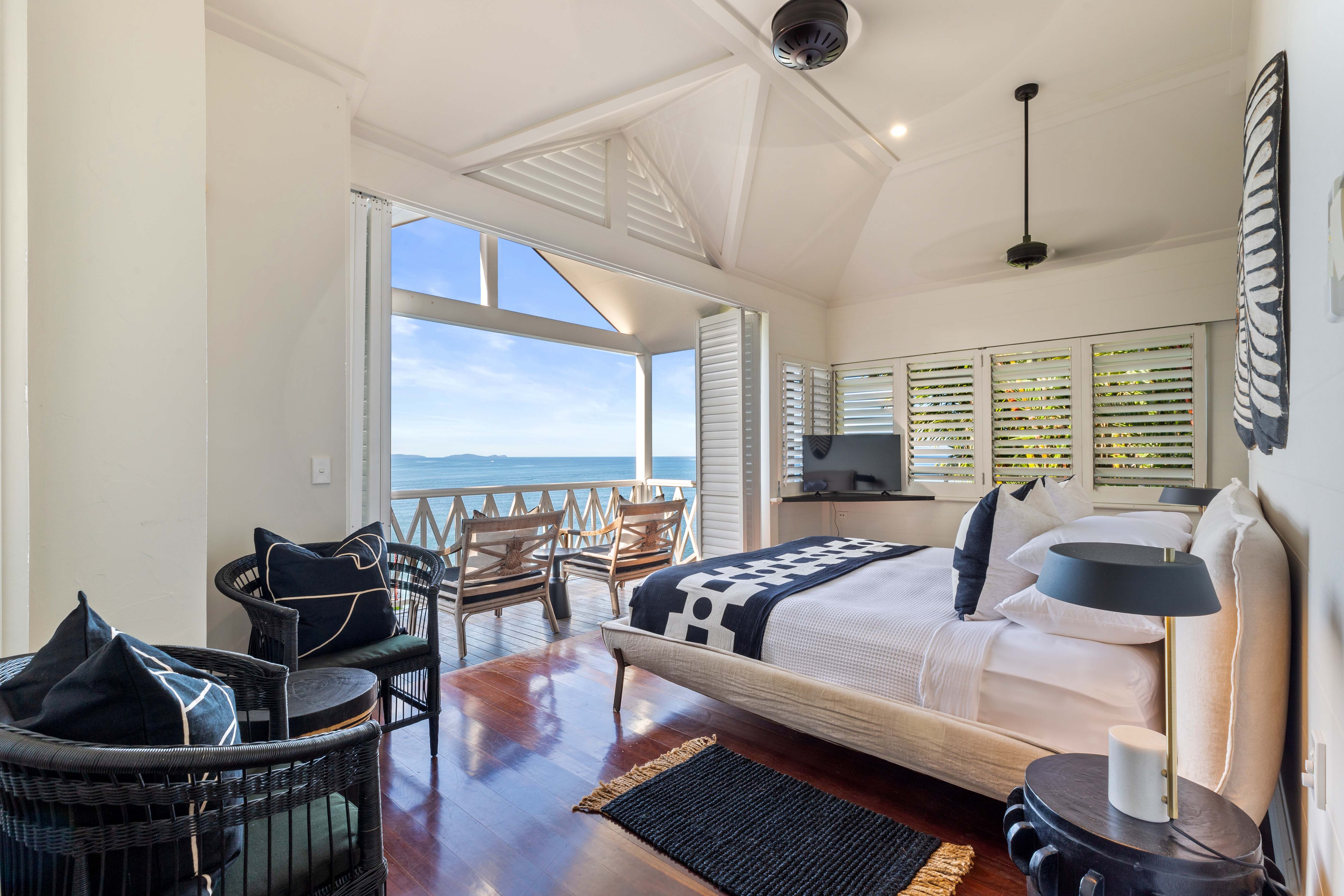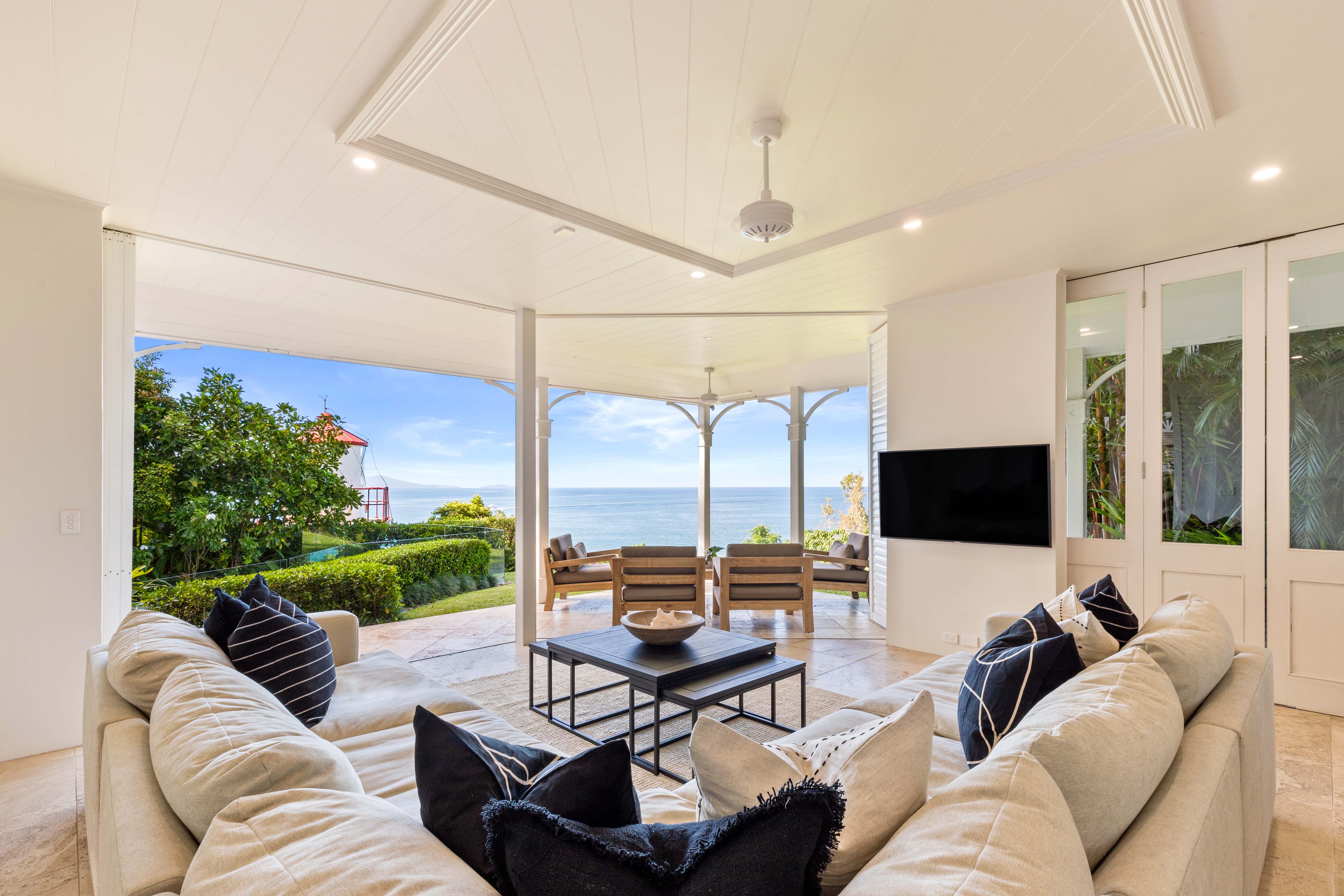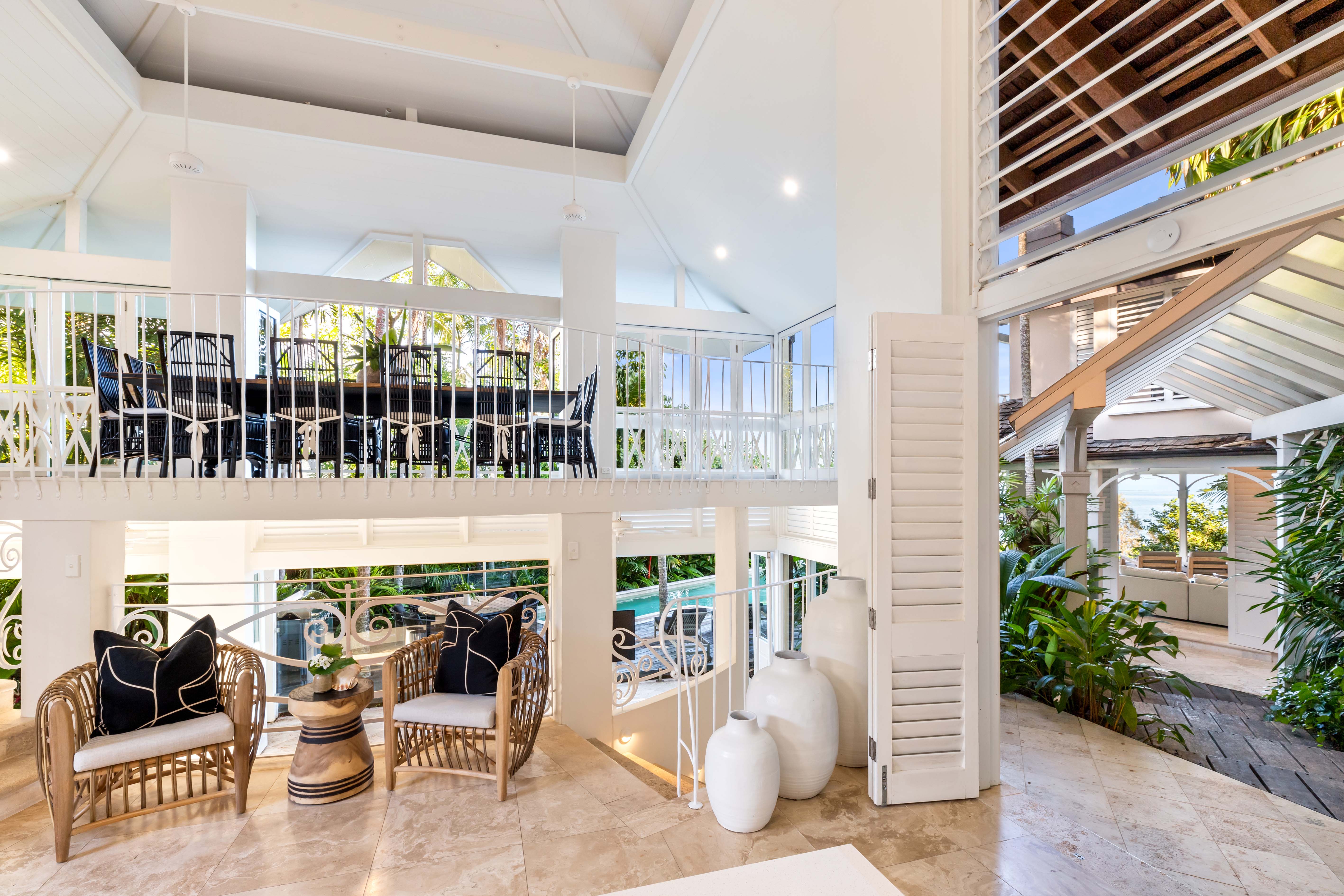 Located on Millionaire’s Row, 7 Wharf St Port Douglas is an immaculate pavilion property reminiscent of architecture in the South Pacific, designed over multiple palatial levels that meet an uninterrupted view over the cool blue Coral Sea, to Low Isles and Snapper Island, and up to the Daintree mountain ranges in the distance. This is a private destination sought by celebrities and those seeking an indulgent escape to paradise, a Haven for relaxation.