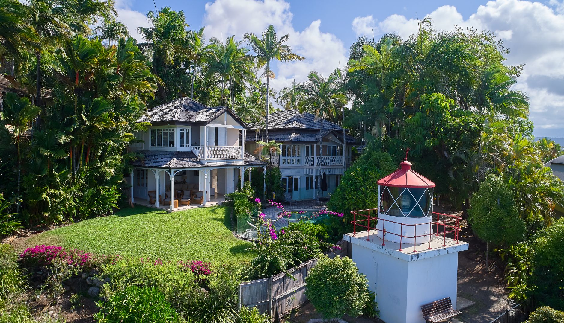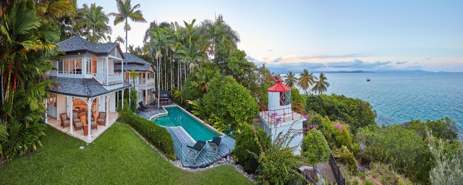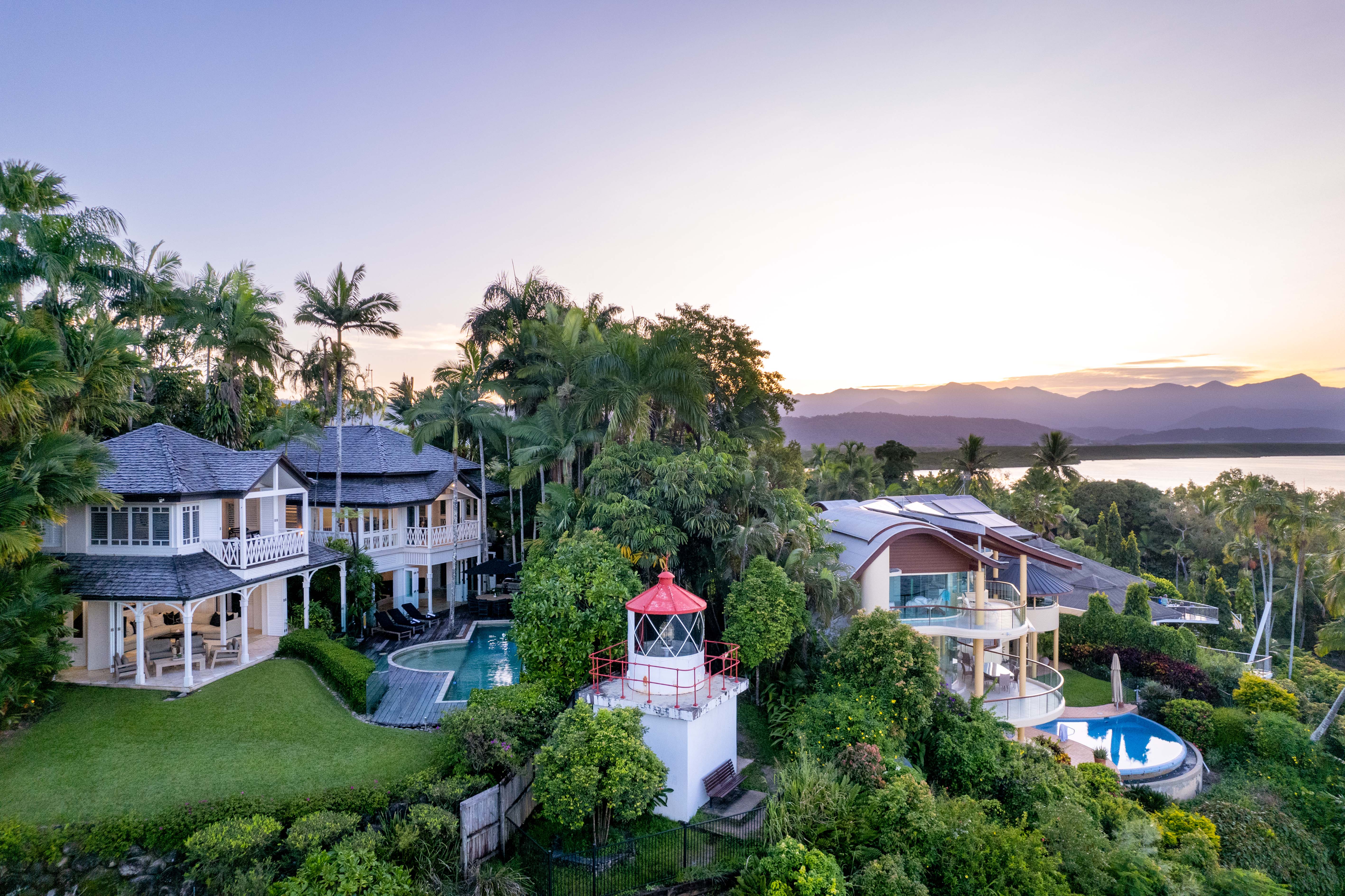 With an address at the top of most people’s wish list, and in an elevated location on Flagstaff Hill just moments from the village vibe of Macrossan Street, 7 Wharf St Port Douglas can best be described as the ultimate in luxury tropical living. Next door, a defunct lighthouse adds to the charm of this exclusive destination, which is aptly nicknamed “The Lighthouse”.